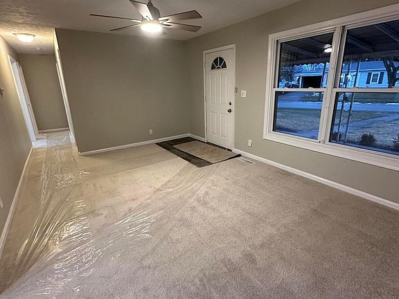 **$1000 TOWARD BUYER CLOSING COSTS**Charming 3-bedroom remolded ranch on a spacious lot with a welcoming front porch. This home features a brand-new bathroom and plush new carpeting throughout. Perfect for modern living in a tranquil setting.