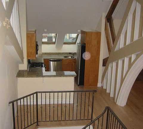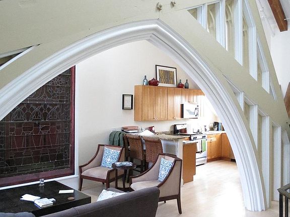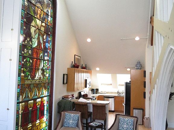 South Boston... W Broadway near A St, steps to the Broadway Red Line Station and next to the Court Square Press/Macallen condominiums in dynamic location minutes to downtown and South End. Take the elevator to this stunning Converted Church penthouse loft features maple floors throughout and breathtaking living room with original beams & trusses, many different layout possibilities and multiple sky lights. Open chef's kitchen features maple cabinets, granite counters, very large granite breakfast bar & stainless steel appliances. Beautiful original lighted stained glass window within the unit. Private Balcony. Two spacious multi-tiered bedrooms each with en suite baths with granite and maple finishes. Additional half bath off of living room. Custom iron railings throughout unit. Washer/Dryer in unit. One full assigned parking space in gated lot. Heat & hot water included. One Month Fee. Available 5/15 for $3950.