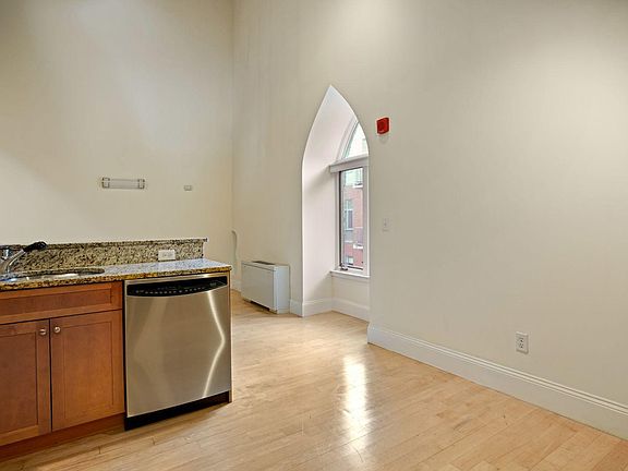 Fantastic and unique 2 bedroom, 2.5 bath penthouse in a converted church in South Boston. Words cannot describe this beautiful space. Soaring ceilings with exposed beams, tons of light flood the stainless steel and granite kitchen. Private outdoor deck, In unit laundry. Heat and hot water included along with one parking space! This is a must see. Heat and hot water included. Renter pays electric. First month , last month and broker fee due at signing. Tenants must carry renters insurance. $50 key deposit held in escrow. Cats ok.