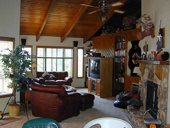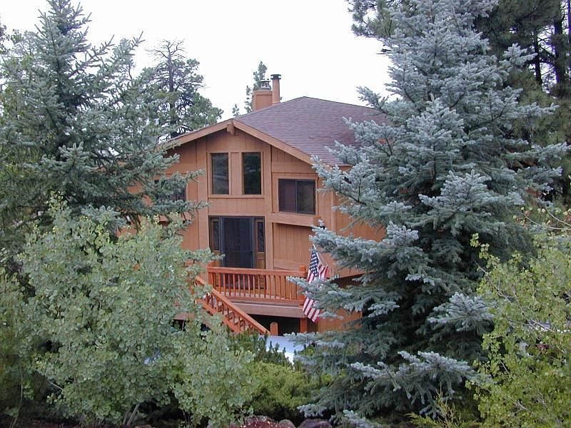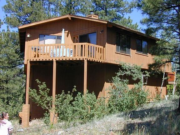 Beautiful panoramic views off of this cul-de-sac lot. Truly nestled in the pines. Large 2-car garage that you will access through the family room, then up the stairs to 4 bedrooms, living area and a large kitchen. Wood burning fireplace, woodstove for those cold winter nights. Seller is a licensed Realtor in the State of Arizona.
