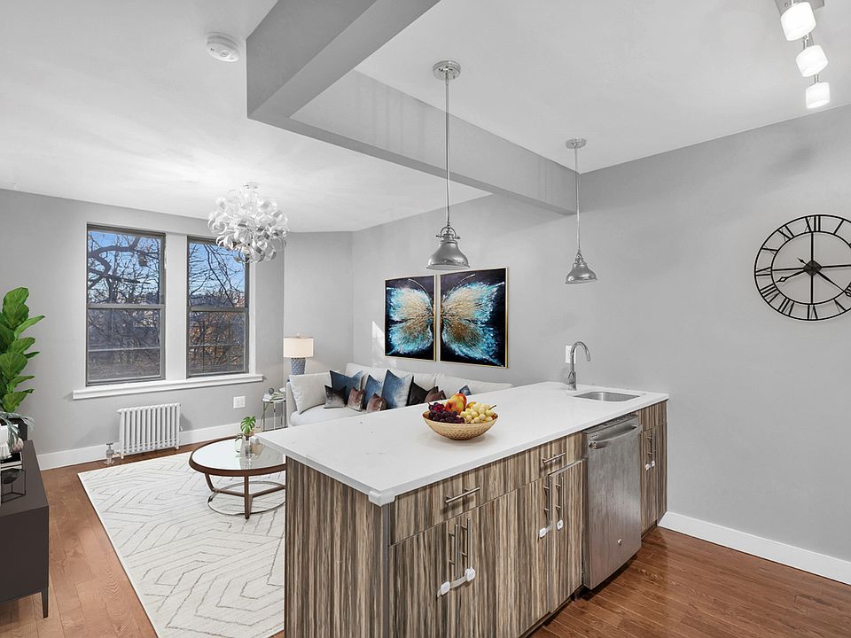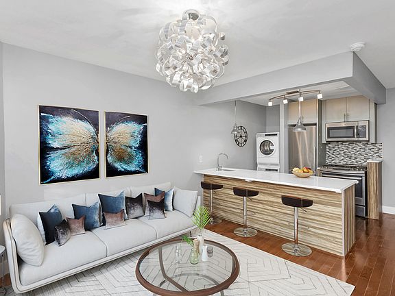 just listed for may 1 real 2 bedroom with massive bedrooms - not street level the unit is facing south and has amazing sun and views of Manhattan condo style finishes with xl living room with breakfast bar full sized kitchen with dishwasher and stainless steel appliances washer/dryer in unit for your comfort brand new elevator laundry live in super rhino or other corporate guarantees accepted here never pay a security again inquire for details