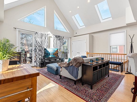 This stunning 3-bedroom duplex, completely renovated in 2013, offers bright, open living with dramatic vaulted ceilings and abundant natural light. Situated on a residential street just 0.2 miles from Davis Square (Walk Score: 96), it perfectly balances modern comfort with sophisticated urban living. Experience skylights and expansive windows, a versatile loft ideal for a home office, and a high-end kitchen featuring Bosch and Viking appliances. The primary suite boasts a private balcony, walk-in closet, whirlpool tub, and shower. Complete with in-unit laundry, a shared EV-charger-ready garage, large driveway, expansive front balcony, enclosed backyard, and ~250 sq ft of basement storage. Enjoy the best of both worlds: a quiet home on a tree-lined street in a sought-after neighborhood with plenty of parking, friendly neighbors and an annual block party, PLUS easy access to public transit, bike / running paths, and all of the events and amenities in Davis Square.
