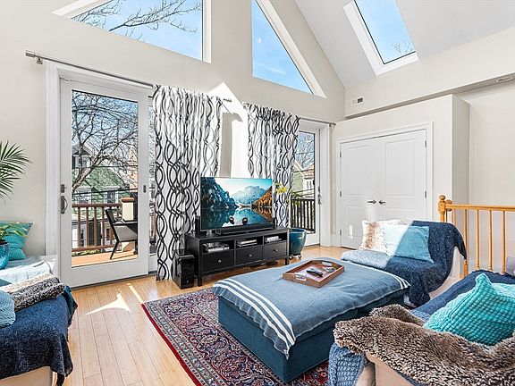 • Features: Skylight, Vaulted Ceiling(s), Closet, Flooring - Wood, Balcony / Deck, Open Floorplan, Recessed Lighting