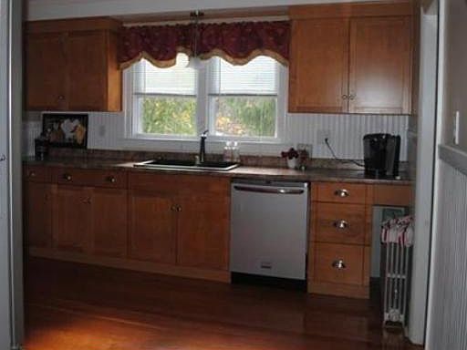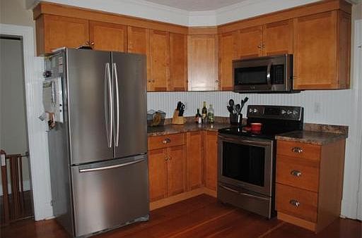 In 2011 this mint 2 family was completely renovated. Included are new windows, roof, electric panels, hot water heaters, kitchens and baths, stainless steel appliances, washer and dryer in each unit, hardwoods throughout and all newly painted. The first floor unit has a screened-in porch.. The second floor has french doors to a deck. A walk-up attic and basement with double doors provide more finishable space or just great storage. The large side yard and paved driveway will accommodate at least 6 vehicles. Absolutely nothing to do but move in. Second floor is owner occupied. First floor tenants have no lease. Town sewer and water.