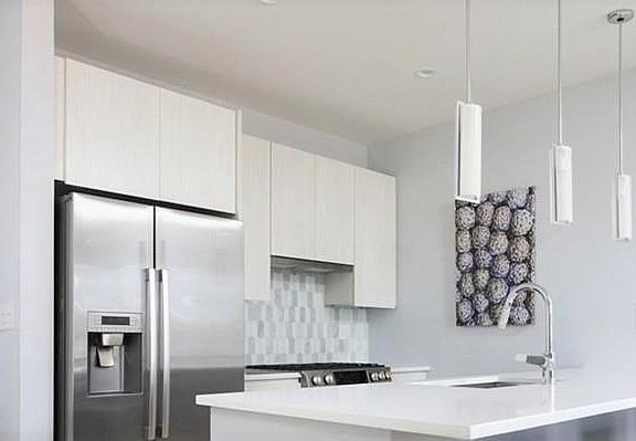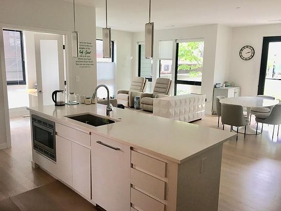 This stunningly large 1,246 square foot condo has 2 beds with large walk-in closets, 2 baths and a large den which makes a great guest suite or home office. Enjoy the sleek kitchen with its gas range, Caesarstone countertops, Bosch appliances, and center island. The unit has high ceilings throughout, central air, laundry in unit, and one spacious garage parking space! Natural all-day sunlight beams in through the homes plentiful windows which lead out to an additional 100 square foot private patio (with gorgeous private garden view) that is perfect for relaxing. This home is built with smart home amenities featuring a Nest Thermostat, two Google Home voice control, built in Sonos speakers, an iPad to control building front door entrance for guests, Amazon Cloud Cam for monitoring door entrance. Furniture can be bought. Building amenities include common roof deck, lounge, gym, doorman, bike sharing, bike storage, dog spa/ dog run.