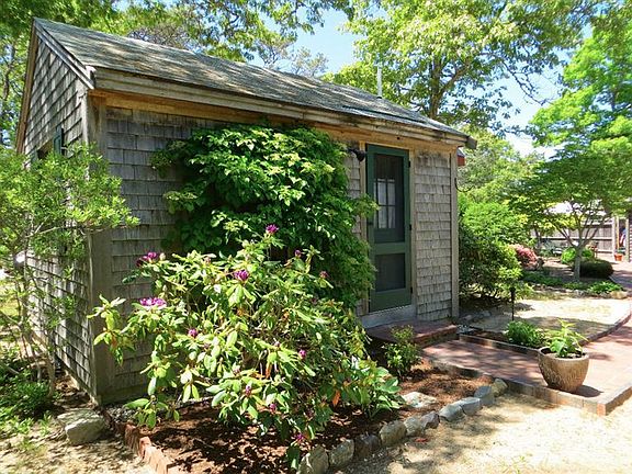 Impeccable and gracious three bedroom, three bath year round home approx. 3 tenths of a mile to a private deeded beach access on Cape Cod Bay. Meticulously maintained inside and out, this charming home has easy one floor living with newer kitchen and baths, a full basement, all surrounded by a beautiful landscape of flowering trees, brick walk ways and perennials gardens. The bonus outbuilding with full bath makes a perfect artists studio or reading room. The lot is larger than a half acre and has a storage shed for gardening tools or bikes and kayaks. Easy back road access to Orleans and so close to the beach this is ideal second home getaway!