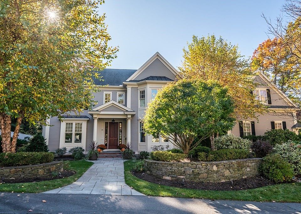 This stunning Colonial welcomes you into an elegant 2 story foyer with amazing quality millwork. The fully equipped cooks kitchen includes 6-burner range, two ovens, two sinks, two dishwashers, and warming drawer. The butler’s pantry with wine fridge leads you into a beautiful dining room. The spacious living room with fireplace brings the outside in with floor to ceiling windows. Option for a first-floor bedroom or family room with private full bath. Gracious home office with custom built-ins. Second floor boasts the primary bedroom with seating area and fireplace flows into a luxurious bath with soaking tub, radiant floor heat and huge walk-in closet and also offers 4 large family bedrooms, 2 full baths, and laundry room. 3rd floor is a sunny bonus room with skylights. Walk out lower level offers a media room, gym & wine cellar. A spacious deck with retractable awning overlooks the large and private back yard. Heated 3-car garage is electric car ready. Solar panels provide rebate!