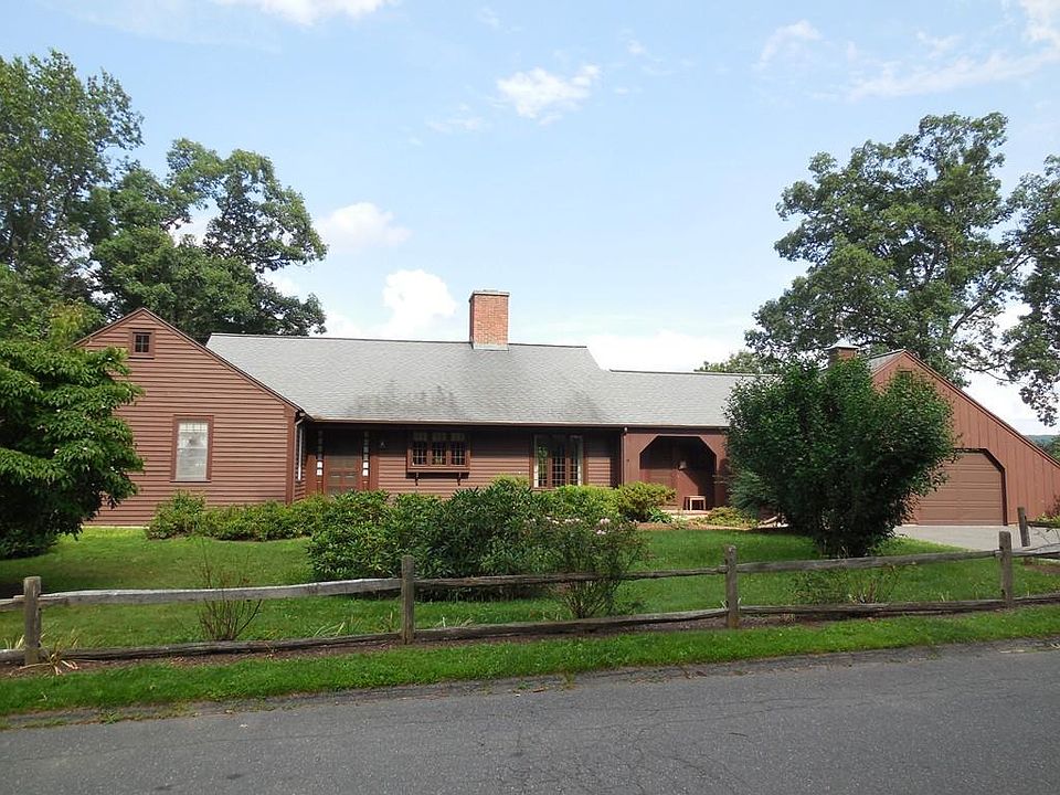 This beautiful home is located in an absolutely gorgeous setting, near the end of a quiet cul-de-sac with a stunning view of Mt. Tom. Watch the sun rise while enjoying that morning coffee on the screened porch, or adjoining patio. Entering the home from the spacious 2-car garage you will find a mud room area with 1/2 bath and laundry. The formal dining room combines as a den, and has hardwood flooring, a fireplace, and a bay window overlooking the rear yard. A huge living room w/ fireplace also boasts views to the east through the large picture window. The spacious master bedroom has a private bath, newer mini-split, and windows facing the mountain. You will find a finished office with another fireplace in the basement level, as well as large workshop/ hobby area with a walk-out to the exterior. There is hot water radiant floor heating throughout, and newer mini-splits for economical cooling.