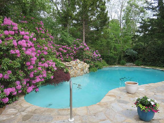 Welcome to this enchanting home. Built in 1979, it has so many lovely features. Located in North Eastham just steps from the National Seashore's walking and biking trails and walking distance to Coast Guard Beach, which is known around the world for its white sand and rolling waves on the mighty Atlantic coast.The home is surrounded by beautiful flowers and landscaping. Tucked back from the private lane as you drive in is a stream leading to its own lily pond. The perfect spot to convene with nature or find sanctuary from the summer crowds.The back yard is fenced and quiet, surrounded by estate size Rhododendrons for privacy in the Pool area as well as by the deck and patio.