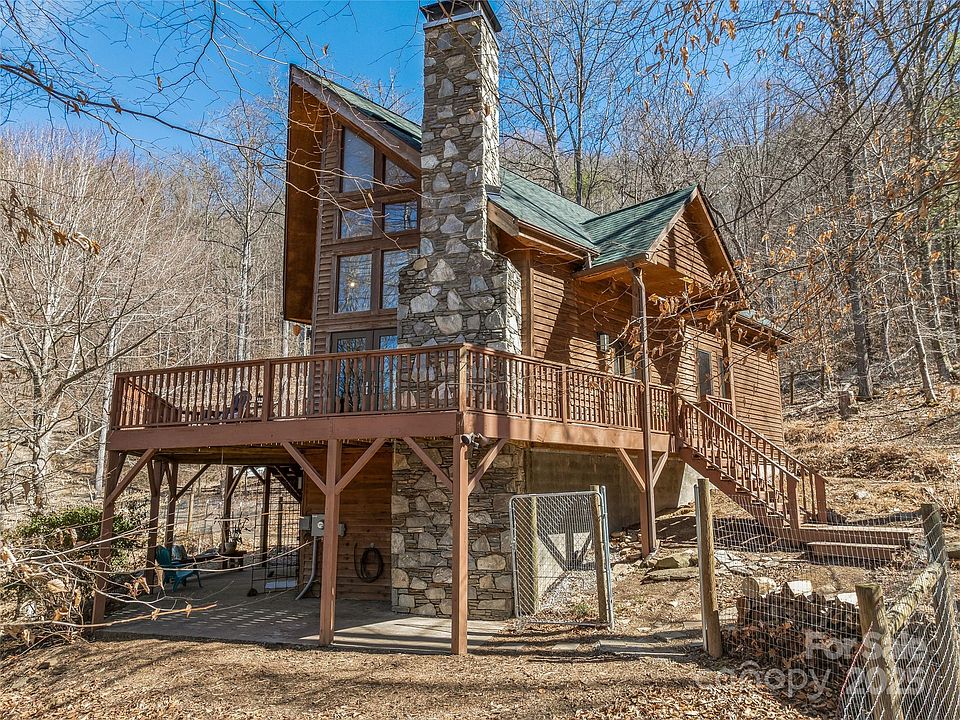 Back on Market at no fault of property. Discover serenity in this cedar-sided mountain chalet nestled on 4.04 acres. The stunning two-story great room features vaulted ceilings and floor-to-ceiling windows, complemented by hardwood floors and a wrap-around deck. Recent upgrades include a new roof, Vermont Castings wood-stove, and lower-level studio kitchenette.