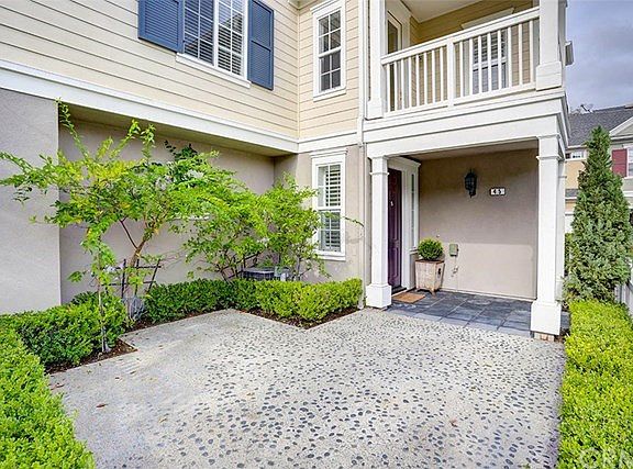 Live the Ladera lifestyle!! This lovely 2 bedroom/2 bath quaint end unit home is located in the community of Charleston Place. It boasts brand new carpet, paint, door handles and light fixtures. The extra bonus is the attached 2 car side by side garage with direct access. The front patio is enclosed with a white picket fence which is great for entertaining. There is a huge storage area under the stairs at the entry. All living space is on one level. The kitchen has ample counter space and storage which includes a large pantry. It opens up to the dining room and living room. There are two balconies- one each off the living room and dining room. Travertine floors grace the kitchen and bathrooms with plantation shutters throughout. The master bedroom has a walk-in closet, en-suite bathroom with dual vanities. The secondary bedroom is just across the hall from the second bathroom with an enclosed tub/shower. Laundry room is conveniently located on the main level and has built-in cabinets and shelving. Enjoy all the Ladera Ranch amenities which include high speed internet, award winning schools, pools, club houses, tennis courts, water park, skate park and miles of hiking and biking trails.