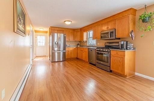 Well maintained Colonial in wonderful Dracut neighborhood. The large dine-in kitchen opens to a deck overlooking the fully fenced level back yard featuring a Reeds Ferry shed. The living room and half bath and complete the first level. Second level boasts a master bedroom with double closets, 2 generously sized bedrooms and a full bath. Large basement is ready to be finished and has plenty of storage space. Conveniently located near shopping, public transportation and schools. Seller prefers a May 5th closing date.