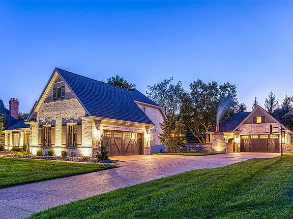 Spectacular brick & stone great room ranch from award-winning Schaeffer Homes. Open floor plan features 12’ ceilings, detailed trim work & handscraped hickory flooring that extends throughout the main living area. Impressive hardwood foyer leads to private study, formal dining room & stunning great room with box beam ceiling, brick fireplace flanked by built-in bookcases & bank of windows. Designer kitchen features glazed cabinetry, granite countertops, premium appliances & 5’ center island with adjoining dining table. Primary bedroom suite with luxury bath with shower spa plus 2 additional bedrooms & hall full bath complete the main floor living quarters. Lower Level includes recreation room with entertainment center & wet bar, gathering bar, office, workout room & full bath. Situated on parklike .74-acre grounds with outdoor living room, patio with grilling station & full-height fireplace & resort style pool with waterfall plus 2-car garage & detached garage with bonus room & ½ bath.
