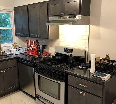 First floor apartment of a two family house. Ceramic tiled kitchen with new luxury appliances and bar top overlooking large living room. Central Air/forced hot air, gas stove and dishwasher. Apartment was just recently renovated including new hardwood floors. House is located at a very quiet dead end street on Red Bank's east side bordering Fair Haven. Large fenced backyard with brick patio, outdoor storage shed and shared driveway with off street parking. Walking distance to Red Bank's historic downtown bars, restaurants and shops. Conveniently located near Riverview Hospital and transportation - Train, Ferry, Bus and Garden State Parkway. Owner pays water/sewer bill. Cats & Small dogs allowed on case by case basis.