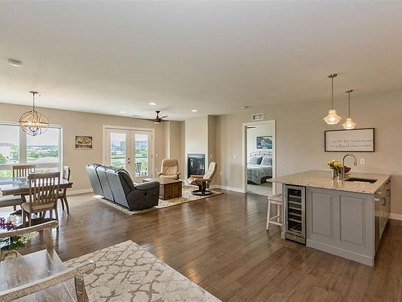 The central location and beautiful views from the Metropolitan make it the finest modern residential building in downtown Cedar Rapids. After entering the secure access building and taking the elevator to the 4th floor, upon entering unit 402 (directly across from the McGrath amphitheater), one is awed by a fantastic view of downtown Cedar Rapids and the Cedar River. The condo includes luxury in-unit amenities, along with secure entrance/floor access, and smart home features. An open-concept kitchen/living area with a fireplace leads to the outdoor deck with sweeping views of downtown Cedar Rapids. Other features include; an in-unit laundry room, NEST learning thermostat, quartz countertops along with solid maple soft close cabinetry featured in the kitchen and both bathrooms, Bosch appliances with dual range gas stove, an in-island wine fridge, modern three blade ceiling fans with distressed Koa blades and LED lighting, floor to ceiling tiled shower, and jetted bath-tub in master bath. The split floor plan provides privacy for the master suite and guest bedroom/office, with another full bath. Combined with an attached heated one-car garage, on-site exercise room, restaurant, and property manager; this condo is the perfect place for convenient Downtown living. Eight years of tax rebate for the condo remain. The building is pet-friendly. If you dream of a convenient life in a perfect location, call today for a private showing.