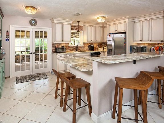 Lovely three bedroom, two bath home situated on picturesque 2.34 acres with majestic oak trees, lush landscaping, a variety of fruit trees, walking trail and paved circular driveway. Enjoy upgraded, on-trend kitchen with granite counters, stainless steel appliances including a gas range. New roof installed November 2018. Other great features include a large stone wood-burning fireplace, diagonal-tiled floors throughout main living areas, spacious laundry room and french doors leading to an oversized screened in lanai. Detached workshops, 2-car detached carport and pool convey with property. Access the home from both, Golden Gate Boulevard and White Boulevard; a superb convenience not many properties afford in Golden Gate Estates. Shopping and dining are a short distance away. Newer hot water heater, water system, septic field, and complete A/C system.