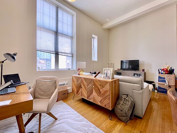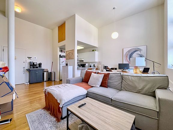 This spacious sun filled apartment features soaring ceilings, two large bedrooms, two full bathrooms, and a kitchen equipped with a dishwasher and plenty of storage space. Laundry on every floor. Second floor of this elevator building. Great location with close proximity to shopping and the surrounding restaurants in the area. Sorry, no dogs. Available July 1.