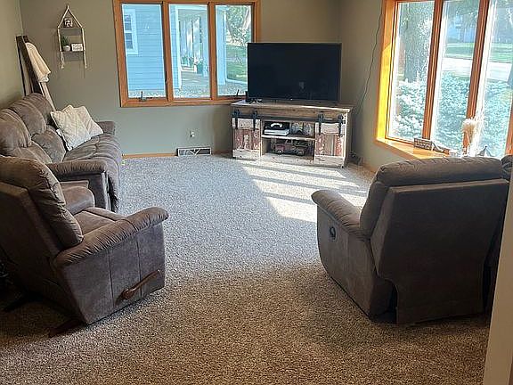 A fully renovated ranch style home located on a quiet street between Dordt University, Sioux Center Public Middle School, and Siouxnami Waterpark. Built in 1972, this house offers 3 bedrooms, 2.5 baths, a spacious lot with a large back yard concrete patio perfect for entertaining. This home offers welcoming curb appeal with a covered front patio, and established landscaping. It also includes a two stall insulated attached garage. The spacious main floor offers a large living room, kitchen & dining area. There are two bedrooms upstairs, a full bathroom, and separate laundry room which also includes a half bath. Updates to the main floor include all new carpet and flooring, kitchen counter tops and back splashes, and updated kitchen cabinets. Bathroom includes a new vanity and tiling above the tub/shower. The full basement offers ample living room space, one bedroom with an attached toy room, a full bathroom with recent updates such as new shower. The basement also offers lots of storage space. The basement recently had new carpet and pad added in all the rooms and stairs. Other value added updates include new shingles in 2021, new water heater installed in 2023, & radon system. All appliances included and move in ready.