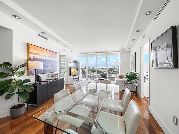 Step into Residence 1610 at 450 Alton Road, your South of Fifth retreat where luxury meets Miami living. This impeccably furnished 2-bedroom, 2-bath condo boasts a spacious split floor plan with hardwood floors throughout, blending warmth and elegance. The open gourmet kitchen is perfect for entertaining, flowing into light, bright interiors, and an expansive wraparound balcony showcasing panoramic views of South Beach, the ocean, and the bay. Embrace the cool, chic vibe with world-class dining, cafes, upscale markets, and Lincoln Road just steps away. Enjoy a sophisticated lobby, lap and day pools, outdoor dining, spa, gym, library, and 24/7 attentive security. Coastal elegance awaits.