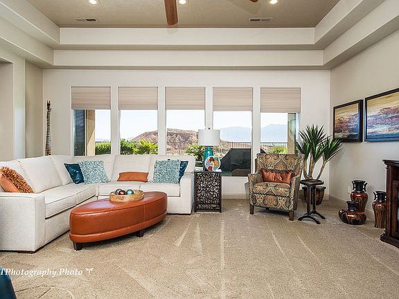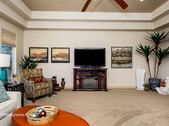This is an "Ence" built home in the desirable gated community of Falcon Crest. The entrance into the home greets you with a wonderful view of the mountains as soon a you walk in the door. Even more view to see when exiting onto the patio just off the dining area where you'll see the Falcon Ridge golf course and the city as well. The current styling of coffered ceilings are located in the entry and great room. Ceiling fans located in all bedrooms, great room and kitchen. The selected wall colors, upgraded carpet and tile are warm and tasteful and were chosen by a designer. Accent lighting the master bedroom . And, the master bath upgrades include a deep jet tub, tiled walk in shower and walk in closet. The seller is the first owner and has been lightly used, well maintained and is professionally cleaned after each visit.