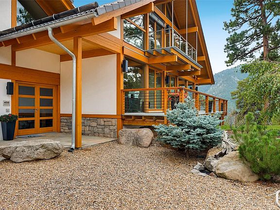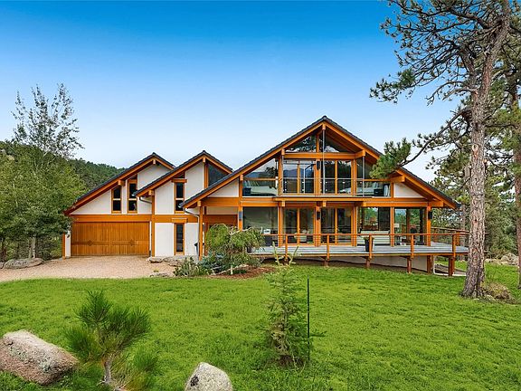 European-inspired custom home on 38-acres. Less than 15 minutes from Boulder. The home blends its sophistication with peaceful surroundings & glorious mountain vistas. Floor-to-ceiling windows invite the splendor of the mountain landscape into the rhythm of your daily life. The open design facilitates impromptu entertaining. Gorgeous wood beams, pillars and rich hardwood floors and the expansive wrap-around deck signal an abundant lifestyle without so much as a hint of pretense or superficiality .