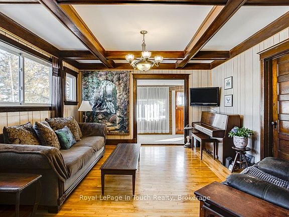 Welcome to 450 Assiniboia Street. This home is a gem set on over a private half acre with a detached double garage with hydro that offers added workshop, hobby space, man cave or storage. This home offers 1300 sq ft finished space with a warm welcoming atmosphere, full of charm, character and comfort all on one level. This unique home offers original coffered ceilings and strip hardwood flooring and solid 5 panel wood doors and quality trim from a by-gone era. A functional kitchen, cozy bright and spacious living room and separate dining area flows comfortably, convenient laundry area with newer appliances, newer bathroom and a convenient 2nd bath. Soak up the sunshine in the sunroom with natural light or have your morning coffee on the updated deck - a perfect spot to unwind after a busy day. Room to roam in a fully fenced massive private yard with gardens and mature shade trees is a retreat for children, pets, gardening and entertaining family & friends with bonfires on quiet evenings under the stars. This move-in ready property is perfect for first-time home buyers, downsizers or just looking to simplify without sacrificing comfort and space in a quiet family friendly neighbourhood. On municipal services with additional features - newer furnace, newer water heater, newer roof, newer sump pump, central air, garden shed, 2nd drive with gate. Delight in the small town community charm. So much to do with easy access to atving, boating, fishing, swimming, hiking, cycling, snowmobiling, golfing, skiing. Just minutes to the beautiful shores of Georgian Bay beaches, marinas, trails, parks and walking distance to Tay's outdoor rink, park, baseball field, community center and library & local amenities. A short drive to Midland, Orillia and Barrie. Offers endless possibilities for builders, renovators, investor! Don't miss your chance to make this charming and affordable home your own and get into the market. Call today to arrange your own private viewing!