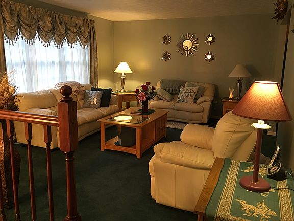 Meticulous large split level, original owner, new updates including roof, rear deck, new flooring and lighting in kitchen and bathrooms, sky light windows in both kitchen and bathroom, new shower fixtures, freshly painted throughout along with new stained wood stair railings, kitchen wall backsplash tile, new asphalt driveway, eat in kitchen with pantry, new dish washer. Lower level is finished living space with a wood burning fire place, game room and spacious laundry room. Anderson windows and screens throughout. Sliding glass doors lead to large rear deck. Including HSA home warranty. French drains, two acres partially wooded.