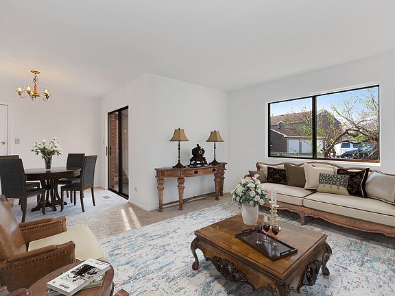 This spotlessly clean townhome is ready to move right in! Living room and dining area has slider out to the patio. Updated kitchen with new white cabinets, countertops, sink, flooring and appliances. Huge master bedroom with extra large closet and sliding door out to your own private balcony. The generously sized second bedroom also has a large deep closet. Stackable laundry in unit too. New carpet, paint, flooring, powder room vanity, hot water heater, furnace and air conditioner. A detached one car garage just a few feet from your front door. Monthly association fee includes exterior maintenance, lawn care, snow removal and garbage. Quick Close!