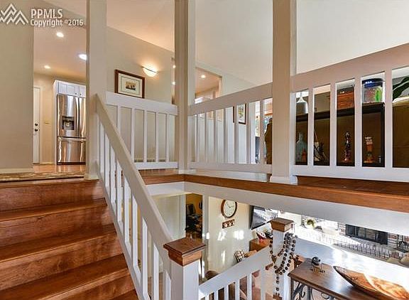 Gorgeous updated home! The welcoming covered front porch and new wood door leads to an open entry. The main level has new maple wood floors almost throughout. The large and open living room has mountain views out the front of the home and leads to the separate dining room with beautiful lighting with access to a private deck for outdoor entertaining. The kitchen has been completely remodeled to include upgraded appliances with gas double oven range, soap stone countertops, island with counter seating and quartz top, new lighting, subway tile backsplash, solar tubes for additional light, and new large pantry. The large master bedroom has a walk-in closet and attached recently remodeled bath with granite counters and custom tile shower. Two additional spacious bedrooms on the main level that share a full bath with recent upgrades. The lower level has a large family room with lots of light, built in cabinets and a brick hearth for the wood burning fireplace. A fourth bedroom is on the lower level as well as a ¾ bath, laundry, and separate mud room with easy access to the garage. The oversized garage has built in floor to ceiling storage cabinets and is heated. The home also features a large covered and enclosed outdoor patio with built in lighting to provide additional outdoor living space. The lot is treed with natural landscaping and Pikes Peak views and lot lines extend beyond the fenced area. Additional recent upgrades include extensive rain mitigation system put in, fire mitigation, new electrical panel, new bottom up/top down blinds, and new paint. A/C and a whole house fan make for cool summer living and the storage safe in the mudroom stays with the house. Located close to award winning schools and a large park.