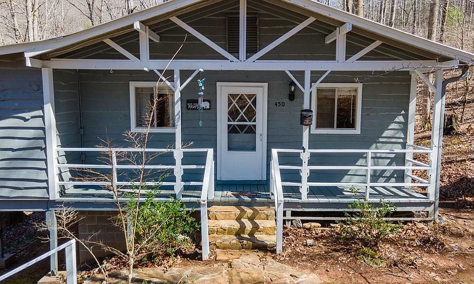 Imagine owning a perfect cabin getaway in the mountains! The Cottage at Byrd Farm is waiting for you on about 1.25 acres in the scenic Cartoogechaye Valley of Franklin, NC. This cozy spot will capture your heart the moment you step inside! It's got that cool retro cabin feel with a spacious living area, wood walls, and a gas fireplace for snuggling up on chilly nights. The kitchen is updated with nice cabinets, appliances, and hardwood floors. There are two bedrooms that share a renovated bathroom with a combo tub/shower. Plus, there's a stacked washer/dryer for convenience. The screened porch is perfect for meals, and there's a deck for grilling. The wooded lot gives you privacy, and there's a carport, metal roof, and central HVAC that's just 4 years old. Whether you want a getaway, vacation rental, or full-time home, this place has everything you need!