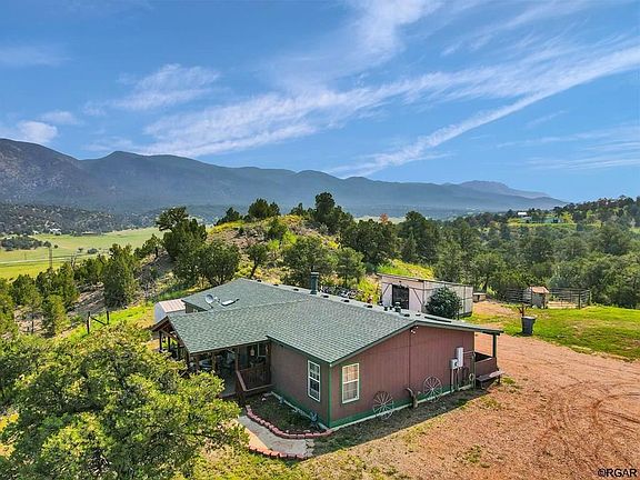 Your dream of mountain living starts here. This affordable mountain home lies only 15 minutes from town, but offers all of the wonders of mountain life. Situated on 36 acres and backing up to thousands of acres of BLM land. Begin your day on the large front deck with sprawling views of the valley and surrounding mountains. Venture inside where you will find a spacious living room with a wood fireplace that you can cozy up to as you watch the snow fall on cold winter days. Cooking will be a breeze in the large kitchen with newer stainless steel appliances, including a gas range with middle burner and French door refrigerator, along with newer luxury vinyl floors. The split floor plan provides privacy to the roomy Master Bedroom with a walk in closet, 5 piece bathroom w a soaking tub, and newer laminate flooring. The water heater and roof are only 1 year old. Paint was done 2 years ago and the 1 year old swamp cooler cools the home efficiently with low energy bills. This beautiful parcel offers about 3 acres fenced for the furry friends, a loafing shed, 15 x 19 shed with power, raised garden beds that stay with the home, a small private shooting range with power and water nearby for campers, and access to thousands of acres of BLM.