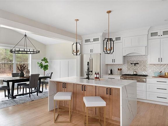 One of a Kind, Completed New Construction In East Greenwich. This Modern Colonial features 3,095 sq/ft of living space- highlighted by a high-end kitchen and incredible primary suite. 450 Carrs Pond Road is meticulously designed with custom finishes and natural wood detail throughout. Enter into a spacious foyer with first floor office and conveniently located half bathroom. Continue into a chef's-kitchen featuring custom cabinetry, Thermador appliances, wet bar and hidden butler's pantry; all flowing effortlessly into a perfect dining area. Living room with a custom gas fireplace makes this the perfect space for entertaining. Hardwoods continue throughout the home as you head upstairs to 4 bedrooms, 3 full bathrooms and laundry room. The Oversized Primary Suite features a 13X15 walk-in closet and spa-like ensuite. The secondary bedroom boasts a private bathroom ensuring added convenience and comfort. The Jack and Jill bathroom connects the remaining two bedrooms. The builder spared no expense at 450 Carrs Pond and included all custom upgrades you can ask for. Additional features include central A/C, 2-car garage, farmer's porch and covered back deck. Direct access to the desirable Carr Pond walking trail just across the street, 10 minutes to downtown East Greenwich and just 5 minutes from highway access. Don't let this one pass by, completed new constructions with this quality rarely hit the market. Schedule your private showing today.