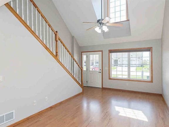 Nice townhome in Blue Grass, IA. Ready to move in to and features vaulted main floor master and living room, versatile loft area, new carpet, paint and hassle-free living as the HOA covers the snow and lawn care. You will love the neighborhood. Spacious kitchen with dinette and door to patio. Neat floor plan! The seller is providing a free completed whole house inspection for the buyer and a one year AHS Shield Plus home warranty. Just move in and relax. Main level laundry too.