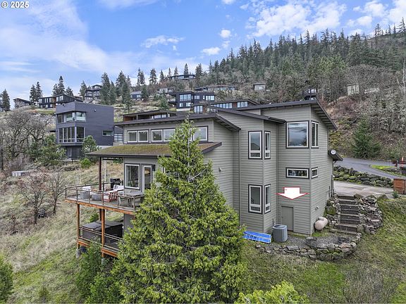 This exquisite 3-bedroom, 2.5-bathroom residence offers a unique blend of modern elegance and breathtaking natural beauty. Located in the Mosier Bluff neighborhood, with an unobstructive view of the Columbia River Gorge,and The Syncline "Coyote Wall" . This homes expansive windows frame panoramic views, while an open floor plan harmoniously connects living spaces, creating an ideal setting for both relaxation and entertaining. The interior is thoughtfully designed with an emphasis on quality and comfort. A modern kitchen, featuring beautiful Silestone countertops, a center island, high-end appliances, and expansive windows offering stunning views. The luxurious primary suite, occupying its own private floor, offers a separate sanctuary with an attached Primary bathroom featuring a generous walk-in shower and walk-in closet. The lower level includes two additional bedrooms, a full bathroom, exterior access, and a gym. Step outside onto the lower level expansive deck, complete with a relaxing hot tub, and soak in the awe-inspiring scenery. This home also offers convenient access to the vibrant Mosier community, known for its artistic spirit, and renowned Mosier Bike Hub. Immerse yourself in the beauty of the Columbia River Gorge with easy access to hiking trails, wineries, MoCo Restaurant and breathtaking natural scenery. This meticulously constructed home, featuring high-quality materials and attention to detail, provides a truly unique and exceptional living experience. Homes in this neighborhood rarely come up for sale. If you have been waiting- here is your opportunity. This home is not in an HOA! 440 sq ft of home is garage.