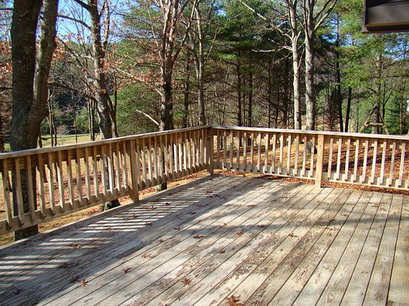 Cute as a button cabin in the woods on 2.5 acres with a creek. All you have to do is move in and start enjoying the home and deck. Home features 3 bedrooms, 1 bath and an open living room/kitchen. Hardwood and laminate flooring throughout home. Partially furnished, Semi Private at end of State Maintained Road. There is a partial basement. Great vacation home or rentals.