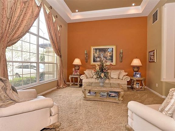 Stunning San Remo Ultra III floorplan by Morrison Homes. Please note 4th bedroom does not have a closet, and is currently used as an office. Floorplan in attachments. This home shows beautiful with high ceilings, very open and bright throughout home. Crown molding in living, dining, master suite and bonus room. Wood flooring in family room and bedrooms 2 and 3. Granite counters in all bathrooms and kitchen. This beautiful home is situated on a cul-de-sac in gated community with lots of mature trees. Oversized lot with vinyl fencing. Screened lanai with sparkling 15x30 pool 3-5â depth. Roof is 2 years old, ac is is 5 years. A cook's dream kitchen with stainless steel appliances, center island, tile backsplash, Murano lighting, and wine rack. Garage floors with epoxy finish, built-in storage/rack system. Attic has a sub floor for storing items. Average all year electric is $313. Exterior just painted. Walk in closets in 3 bedrooms. Bonus room features brand new carpet and a 10x12 storage closet. Triple sliding stacked sliders from family to lanai make for perfect entertaining. Master bedroom with double doors, crown, sitting area with sliders leading to pool. This home shows very neutral and shows pride of ownership. Donâtâ delay- make your appointment to view this home today.