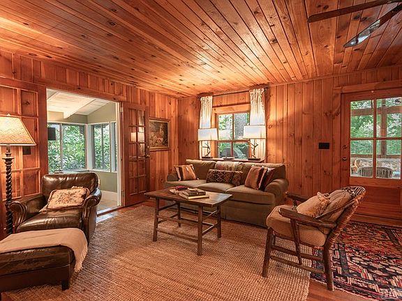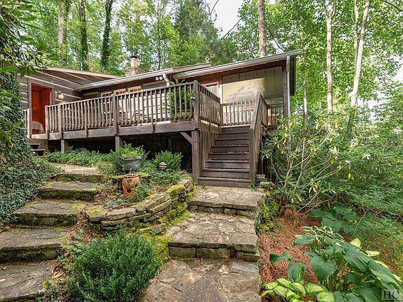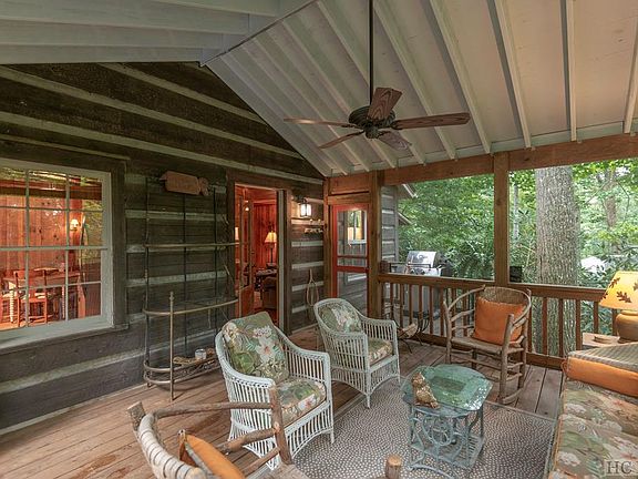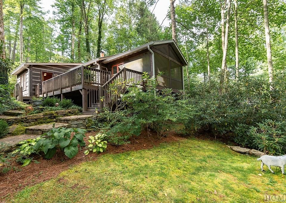 This is exactly what one envisions when you think of Mirror Lake and "Old Highlands Charm". The house is surrounded by gardens that are full of hosta, hydrangea, rhododendron, laurel and a beautiful carpet of ferns. Meander to the porch and take in the view of the, sought after, Mirror Lake neighborhood. Enter the large covered and screened porch where most of your evenings will be spent with friends enjoying good conversation. Once in the cabin you will be reminded of the original homes that Highlanders have loved for over a century. The living area is full of windows that make the pine paneling pop with warmth. Cuddle up next to the wood burning, authentic native stone fireplace. Take in the outdoors from the large bank of windows that run through the fully equipped kitchen. Each bedroom has an en-suite bath so homeowner and guests can have their privacy. Although the cabin might have the original feel, it has been meticulously updated with the latest utilities and perfectly suited for year round living. The Mirror Lake community is known for being the most pedestrian friendly and charming established neighborhood in Highlands. Walk your dog down to the lake or on over to the Highlands Greenway to town.