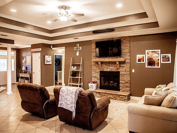 Lovely home located just outside Adel, and still within convenient distance to shopping, schools and hospital. Curb appeal plus and located on 2 acres with 4 bedrooms, 3 baths, and storage room galore! Interior features include double trey ceilings, tile flooring, and stacked stone fireplace. Master suite has tiled shower and jetted tub with tile surround. Formal dining with room defining columns as well as breakfast area for dining. Kitchen boasts stainless steel appliances and granite counter. Exterior features include 2 beautiful acres with nice shade trees, stacked stone accents, storage shed and fenced backyard. Call for additional information.
