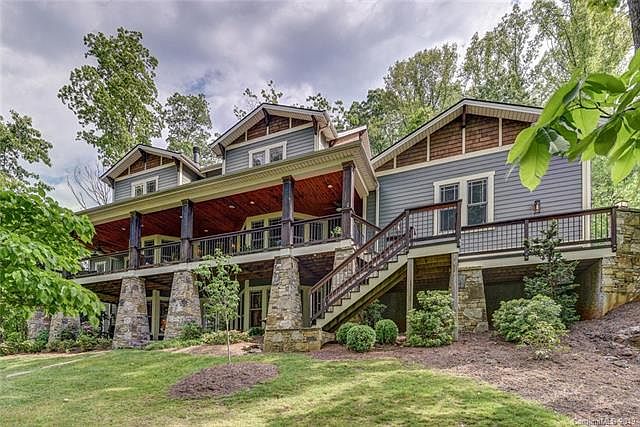 Biltmore Park Craftsman stunner that has it all - location, panoramic views and privacy! Nestled on 1.54 acres with natural landscaping and fenced in back yard. Gorgeous open kitchen with Dacor gas oven range, stainless steel appliances and custom knotty alder cabinets. Master on the main with his and hers closets, walk in shower, soaking tub and private entrance to enjoy the patio outdoors. Soaring ceilings and windows in the great room give this home amazing natural light. Wood burning fireplace in great room & gas fireplace in the den/office give you flexibility. The upper level has excellent bonus space, 3 bedrooms and 2 full bathrooms. The lower level with beautiful hardwoods, has an additional family room/rec room, workout room, bedroom and 2nd kitchen (perfect for guests, caretaker or extended family). Enjoy the year-round mountain views from the massive covered front porch - a lovely place to entertain or relax in the peaceful surroundings just minutes from Town Square!