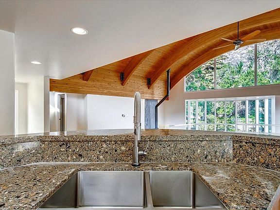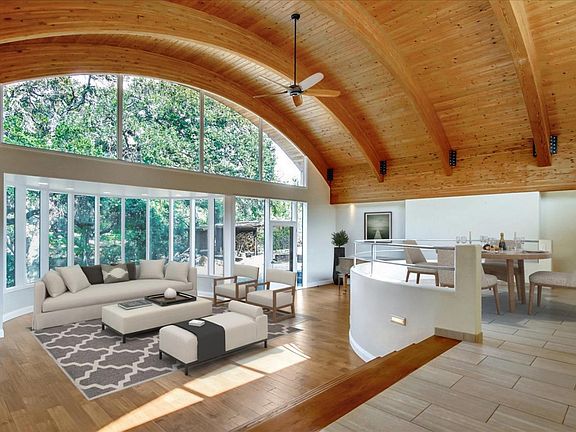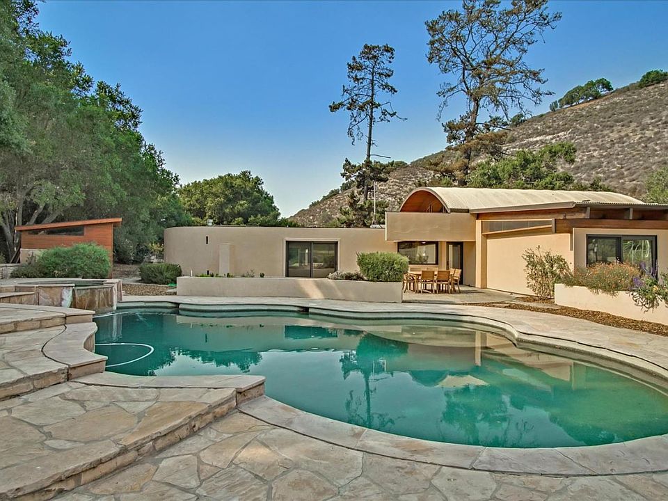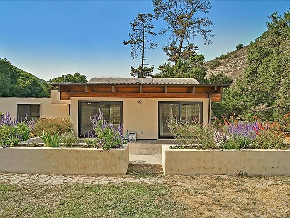 Welcome home to this stunning combination of privacy and immersion into nature. This remarkable estate sits on 6 glorious acres with a lush flowing creek captured by its very own pond system and artesian well. The majestic century oaks and redwoods surround this 3000 sq.ft. 4 bedroom, 2 bath home. The barreled open beam ceiling over the living and dining room captures the walls of glass framing the views of the picturesque waterfall. The updated kitchen includes a Wolf range, Subzero refrigerator, granite countertops, large pantry and windows overlooking the swimming pool, spa, patio, garden and trees. This estate also has a tastefully designed recently remodeled 1 bedroom, 1 bath over 800 sq.ft. guest house on its own septic with air conditioning. Fit with a Tesla charging station inside the three car garage. Expansive growing space includes a fenced rose and vegetable garden, custom chicken coop, owned solar and over 32 fruiting trees and shrubs.