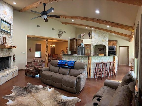 Beautiful horse property located within the Highly sought after Brock ISD! This delightful 3bed 2.5bath ranch style home sits on 10 sandy loam acres with 2 barns! Home has a warm inviting open interior with a stunning fireplace! The sequestered master features a fireplace, jetted tub, split vanities, separate shower and walk in closet! The other two bedrooms share a jack and jill bath! This property has a barn with 6 stalls that turn out to the back pasture along with another 2 stall barn that has covered side parking with an RV plug as well! Additional pipe pen, 2 turnouts for your animals,plenty of room for an arena and radiant views! Located on pavement within 10 minutes of Brock!