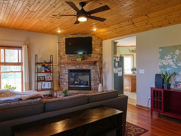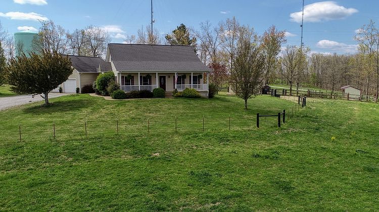 Bring your horses! This home on 13 acres features 3 bedrooms plus an office that could be used as 4th bedroom. The large master suite has a sitting area opening onto the screened porch. The master bath has a tub and a tile shower with a glass door. Upstairs has 2 bedrooms with extra large closets and a sitting area at the top of the stairs. As nice as the home is, the outside may be the best part of the property. Sit on the covered front porch to watch the horses graze, or enjoy entertaining under the covered outdoor patio with a stone fireplace. Your horses will enjoy the pasture with a pond and 2 stall stable. The detached 2-car garage is connected to the house by a covered walkway, and two more buildings provide storage for feed and tack. The home also has a Woodmaster outdoor stove.