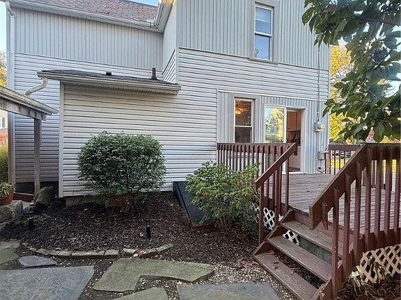 3 bedroom, 1 bath. Has been utilized as a single family rental, most recently at $1300 per month + utilities. Was professionally cleaned including carpet. Exterior bamboo was trimmed. Exterior entry to basement also. Home has been well maintained. Thorough touch ups including painting between tenants. Covered roof on side of garage protects from weather. Patio slider accesses back deck and secluded area. Vinyl replacement windows. Furnace filter changed regularly. Largest bedroom has 2 closets. Spacious bedrooms. Corner lot. Owner maintained all plantings and tenant was responsible for mowing.