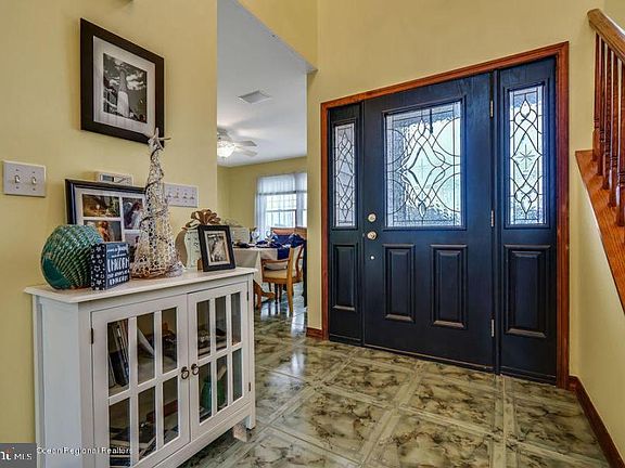 Waterfront Contemporary with 4 spacious bedrooms and 2.5 bathrooms. This home includes an open floor plan, quartz counter tops throughout kitchen, tile flooring, formal dining room, vaulted ceiling in master bedroom with walk in closet and water views. Spacious kitchen with wall oven and center island perfect for your morning breakfast. Spacious 2 car garage with paver driveway. Private backyard with deck. Private backyard with no rear neighbors. The bulkhead is ready for the new owners boat. This is an excellent waterfront opportunity call for a showing today.