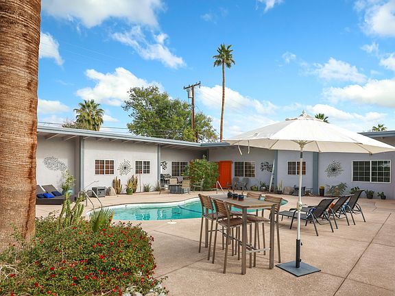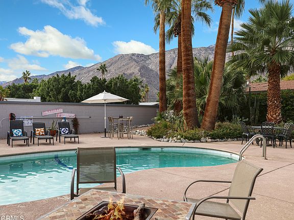 Fantastic opportunity in El Mirador! Well maintained 4-plex with spectacular southwest facing San Jacinto mountain views over the sparkling pool. 2 large one bedroom, 2 bath units and 2 large studio units with great vintage details like vaulted, wood beamed ceilings and private patios in back. Great walkable location to the Design District on Palm Canyon.