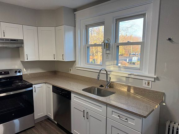 Welcome to this charming 4 bedroom Cape Cod home featuring high ceilings, spacious Living room and dining room. All new flooring and paint thruout. Full bath on first floor plus a first floor Bedroom. An inviting front porch leads to the Living room and dining room to the left. In the rear of the home is a first floor bedroom and also a bright new renovated kitchen with all new cabinets, countertops, Range and Dishwasher! The kitchen leads to an enclosed porch over looking the rear yard. Upstairs are three bedrooms and a hall bath.
