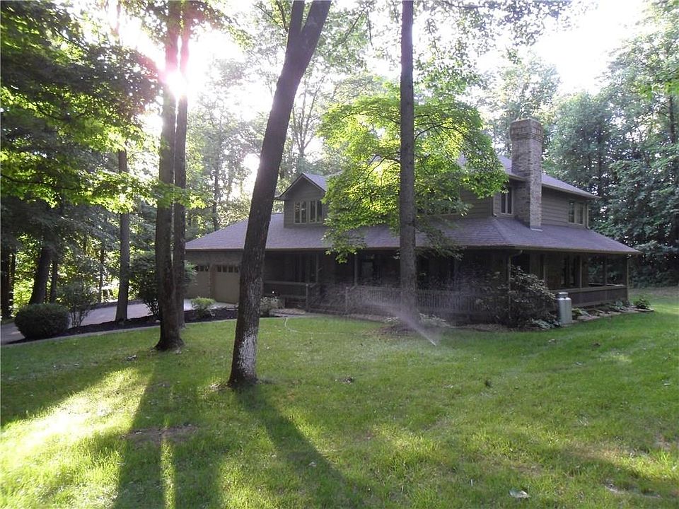 Serenity describes this home. Sitting among a forest of trees and backing up to Anderson Orchard, you cannot ask for more. Home has 3 or possible 4BR, 2.5BA. Beautiful flowing staircase in entry area. Large kitchen with breakfast nook and center island with eating area. Large formal living room with gas fireplace. large dining room. Family room with fireplace with wood insert. A porch that wraps around most of the home. Large deck. 2-c garage and a large storage barn. Motivated seller.