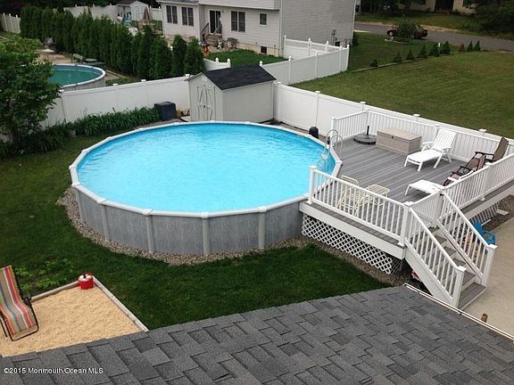 Great home in a great area of Bayville. THREE Bedroom (One being used as a playroom) TWO Bath Ranch with features galore! FULL FINISHED BASEMENT, ABOVE GROUND POOL WITH CUSTOM DECK, FULLY VINYL FENCED YARD,Screened Porch, Front Patio, New Kitchen, and Newer Heating System. Vaulted ceiling in granite kitchen with skylight, hardwood floors in dining room and living room. Sliders lead to huge screened in porch that overlooks expansive yard (100x175) that has pool, play, and garden areas. Priced to sell, so hurry and call a REALTOR today!