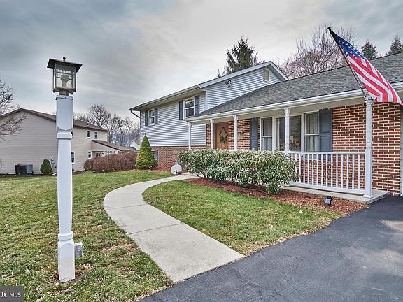 SPLIT LEVEL home on a level .50 acre lot located in Colonial Woods....ideally located halfway between York and Harrisburg...close to I-83...Fairview Twp....Sit and relax on your Covered Front Porch....Living Room w/picture window, ceiling fan and hardwood floor....Dining Room w/hardwood floor and french door leading to Paver patio, large level lot w/shed which also offers electric....Kitchen w/radiant heated Tile Floor, granite countertop w/tile backsplash from Spain....stainless steel appliances...pantry and half bath with heated tile flooring...door leading to 2 car garage....Upper level offers 3 Bedrooms...and 2 full baths....hallway bath recently remodeled with high top vanity, tile floor and new tub/shower....Master Bedroom w/crown molding,ceiling fan, mirrored glass closet doors and master bath w/new vanity....Finished Family Room w/tract lighting, gas fireplace...pool table included