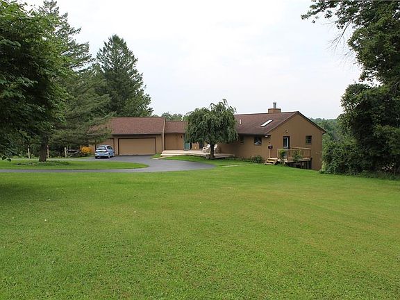 A truly rare find! Absolutely stunning 14.5 Acre private setting! Deep setback off road w/circular drive. Spacious, bright "ranch/colonial" with incredible views from every window. Spacious kitchen w/island & walk-in pantry; Fabulous finished walkout lower level w/wall of windows & 2 story atrium sunroom w/open staircase, & master suite. Beautiful refinished hardwoods & tiled floors, cathedral ceilings w/skylights. 3 car garage, gazebo & garden shed. Wonderful gardens & fruit trees. Perfect dry, open land for horses surrounded by woods & walking trails. No wetlands or swamp! Newer Andersen Low E windows, Multi-zoned efficient radiant floor heat & central heat & A/C. New roof 2008 & 2017. Very quiet & peaceful with easy access to Rt 390.